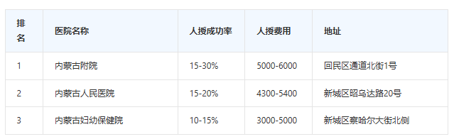 截止目前,呼和浩特人工授精医院一共有3家,其都支持夫精人工授精技术开展,技术实力相差并不大,人授成功率都在15%左右,最高可以达到30%,所以不存在绝对的呼和浩特人工授精医院排名。而人工授精单周期费用大约在3000-6000元之间,具体看患者的身体素质如何。综合来说,在呼和浩特做人工授精性价比是很高的。