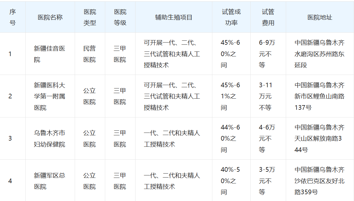 乌鲁木齐市有的试管医院比较集中,因此有很多患者在就医治疗前不知选择哪一家医院,下面就通过对这4家医院的介绍和排名,让大家知道乌鲁木齐试管医院哪家更好。